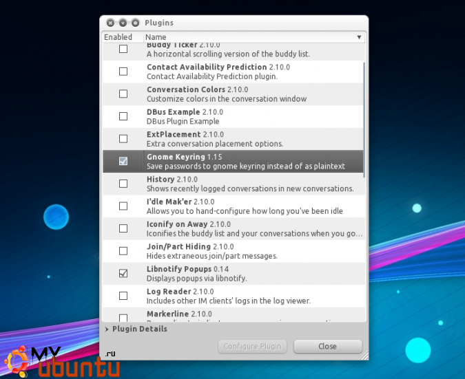 Для других версий Ubuntu (вам нужен Pidgin 2.7.x или выше!), вы можете загрузить .deb файл пакета Pidgin Gnome Keyring:
