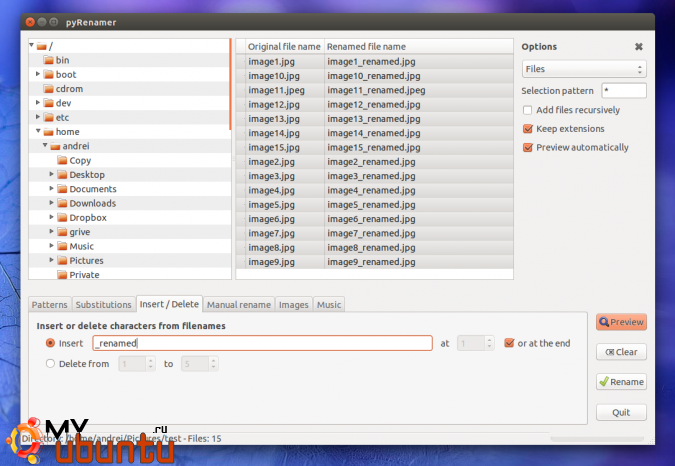 В сравнении с утилитой Thunar Bulk Rename pyRenamer также поддерживает массовое переименование директорий и переименование изображений на основе их метаданных. Другое преимущество – отсутствие зависимости от какого-либо окружения рабочего стола, как это сделано в Thunar.